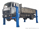 г/п 6 тонн. Передвижной. Четырехстоечный, привод через редуктор, подхват за колеса или за раму. Для ремонта грузовиков Валдай, Соболь, ГАЗ-3308, ГАЗ-3309, грузовиков Исудзу, FUSO, Foton и бронемашин. Возможен подъём автомобилей с диаметром колёс 12-22 дюймов. Поставляется в 2 вариантах Стандарт (в помещение) и ТЗ (Для эксплуатации на улице).