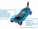 Низкий подхват. Прочная стальная конструкция. Два плунжера обеспечивают быстрый подъем. Два усиленных фиксированных колеса и два поворотных колеса обеспечивают высокую маневренность при перемещении. Съемная разборная ручка с нескользящей удобной накладкой. Предохранительный клапан от перегрузки домкрата.