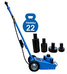 Пневмогидравлический домкрат Г/П - 22 т. Мобильный. Закаленный шток цилиндра обеспечивает надежность работы. 4 возвратные пружины для быстрого опускания домкрата. Разъем для подключения пневмосети. Клапан для быстрого опускания домкрата. Фиксатор угла наклона рукоятки. Угол наклона рукоятки 0-90грд. Удобная ручка для переноски домкрата. В комплекте 4 удлиняющих адаптера: 25 мм, 25 мм, 60 мм, 100 мм. Высота подхвата: 215-456 мм с адаптером 556 мм.