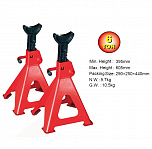 Чугунный шток. Зубчатый механизм фиксации. 4 опоры на металлических пластинах. Усиленные. Реечного типа. Сварная конструкция. Для фиксации автомобиля после подъема в автосервисах или шиномонтажах по ремонту коммерческого авто. Регулируемая высота 370-610 мм. Указанная нагрузка на комплект из 2 шт. Цена указана за комплект - 2шт. г/п 6,0т.