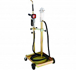 Для бочек 20-60 кг. Установка оснащена тележкой, пневматический насос для масла 3:1 производительность 18л/мин, шланг 4 м, раздаточный пистолет с электронным счетчиком. Колёса 2 прямых + 2 поворотных. Масса: 25,5 кг.