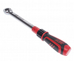 Ключ динамометрический двухстороннего действия. Посадочный квадрат: 1/2". Диапазон усилий затяжки: 20-110 Н·м. Длина: 430 мм. Количество зубцов: 24Т. Надежный храповый механизм. Хромированная поверхность высокого качества. Рукоятка изготовлена из нетоксичного экологически чистого материала ABS. Штампованная шкала. Сертифицирован DIN-ISO и ASME.