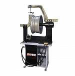 Для правки сложных ремонтов всех видов, в том числе «восьмерок», спиц (от 22-х дюймов, ремонт с мобильным кронштейном). Рама допускает нагрузку до 12 тонн. Вал из стали особой прочности. Станок оснащен специальными болтами, усиленной планшайбой и электроприводом вращения вала, который облегчает зоны правки и качество работ. Конструкция гидроцилиндра фиксирует его в любом положении так, что правка производится одной рукой, без удержания гидроцилиндра на весу.