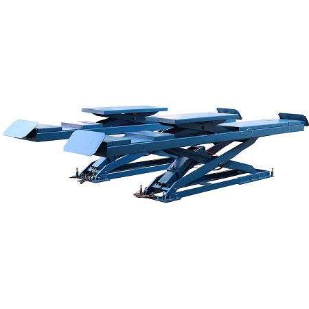Двухуровневый ножничный подъемник оборудован пневматическим стопорным механизмом – требуется подключение к пневмолинии. Стойка управления подъемником расположена отдельно. Рекомендуется для подъема внедорожников, микроавтобусов, Газелей и легковых автомобилей, в том числе и с низкой посадкой в условиях автомастерской и СТО.Ножничный механизм изготовлен из квадратной трубы.