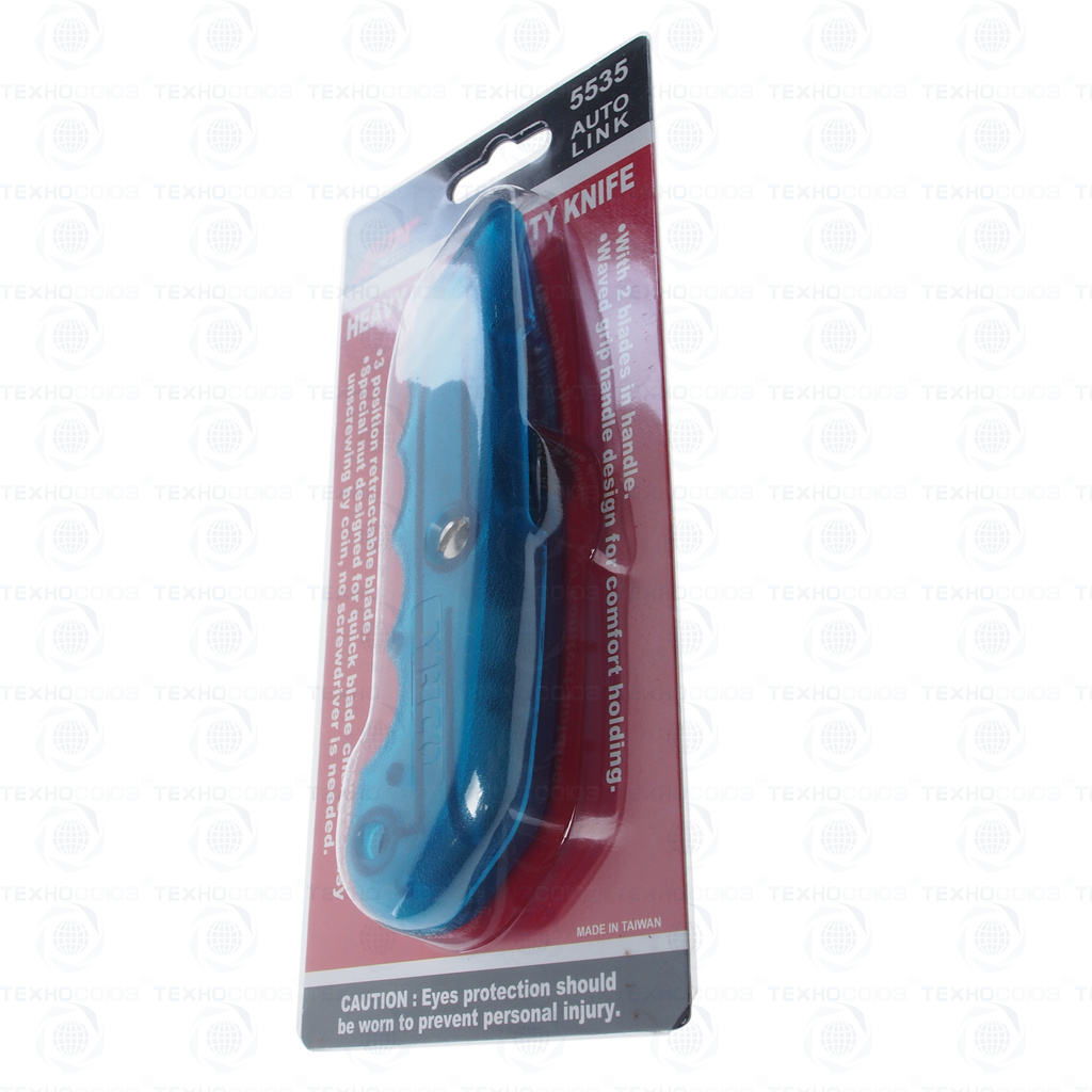 Два запасных лезвия в ручке. 3-позиционное выдвижное лезвие. Специальная гайка, предназначенная для быстрой смены лезвия, не требуется отвертка для отвинчивания, возможно использование монеты.