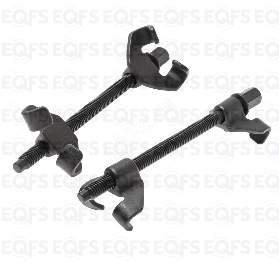 Стяжки предназначены для сжатия пружин при установке и демонтаже всех типов пружин. Захваты выполнены из закаленной хром-ванадиевой стали. Рабочая длина стягивающих винтов - 380 мм. Комплектация включает 2 стяжки.