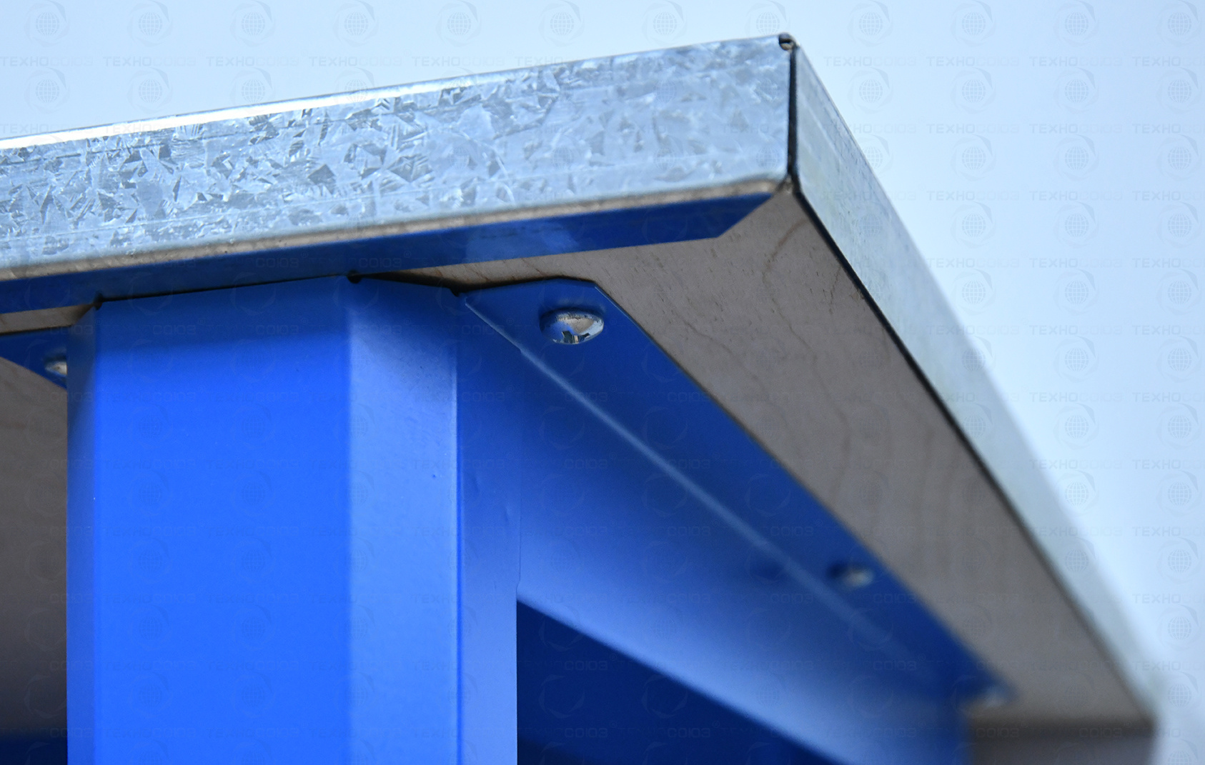 Столешница состоит из листа влагостойкой фанеры марки ФСФ толщиной 24 мм, которая покрыта лаком-антисептиком и листом оцинкованной холоднокатаной стали толщиной 1,2 мм. Глубина столешниц 696 мм.